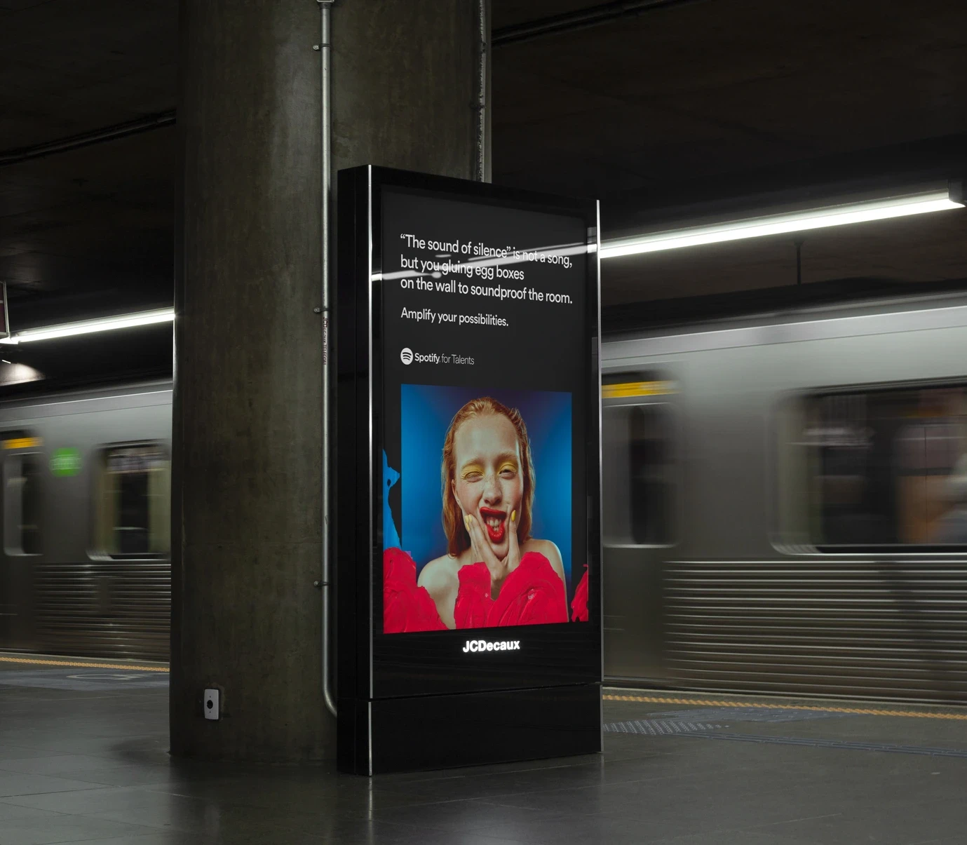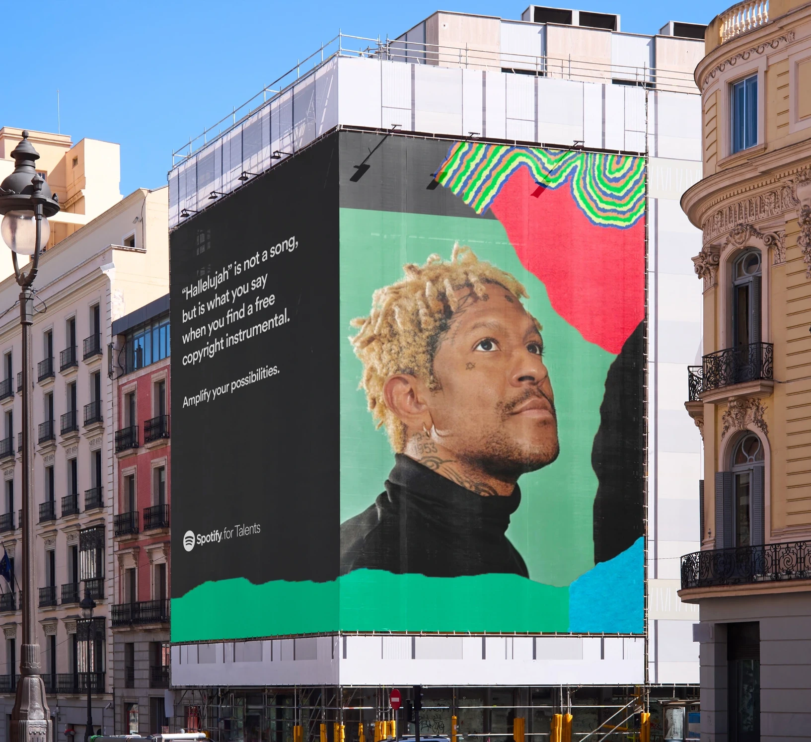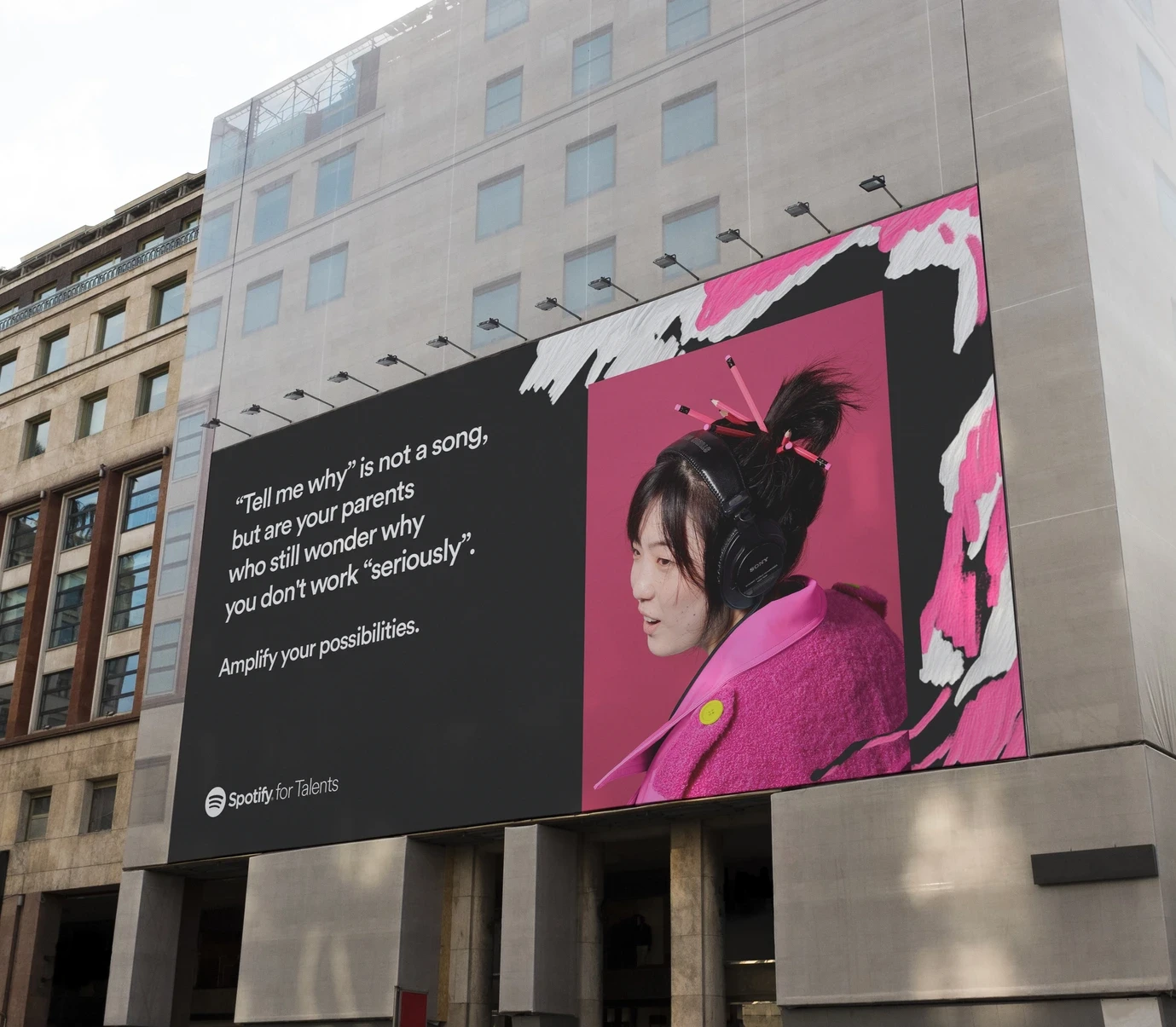 A Spotify's brand extention: a physical place for emerging artists where they can explore the all-around music world. An environment that provides coworking areas, recording rooms, instrument rentals, live music, classes, masterclasses and catering. The main goal is to provide an affordable and profitable alternative for independent musicians. To capture the energy and momentum behind the artists featured, it felt like a natural progression to gravitate towards something with tactile and DIY qualities. Early inspiration for the redesign was drawn from the seemingly collective and familiar teenage experience of discovering new music and self-expression: covering the walls of your room with posters of your favorite band, collaging cutouts from magazines, and collecting pins and stickers from live shows. Utilizing this concept as the overarching narrative for Spotify for Talents helped guide the direction and opened up possibilities for the artwork to evoke various levels of individuality through the nature of DIY.